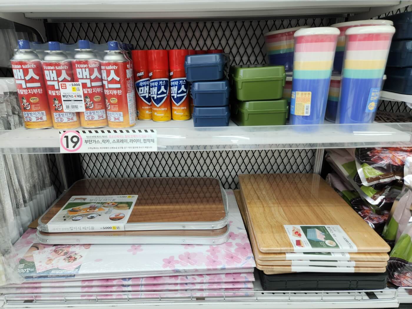 그리고 다른 용품 코너에서도 캠핑용품으로 쓸 수 있는 제품들이 있는데 저 같은 경우에는 미끄럼 방지매트, 접이식 행주걸이도 구매해서 사용을 잘하고 있습니다. 미끄럼방지매트는 접이식 스툴 상판 모양대로 잘라서 스툴 위에 토르박스 같은 플라스틱 수납상자를 올려놓고 쓰는데 박스가 잘 미끄러지지도 않고 사용하기에 좋았습니다. 접이식 스툴 위에 바로 플라스틱 박스를 올리면 미끄럼기 때문에 불편한 점이 있는데 매트가 잘 잡아주는 것 같습니다.