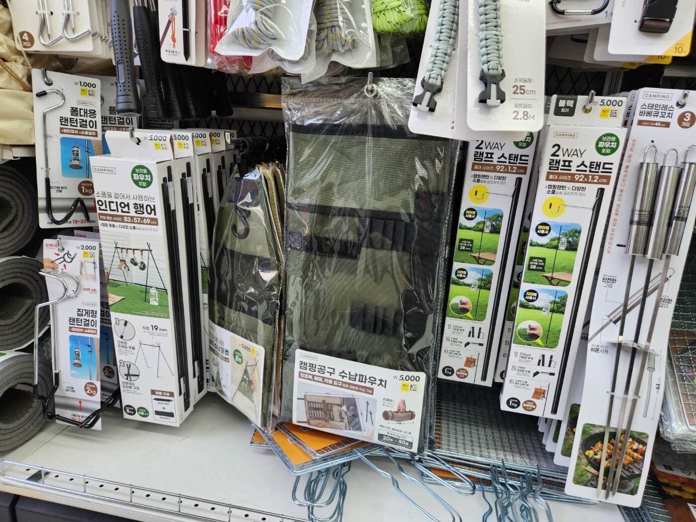 다이소에는 캠핑용품이 정말 다양하게 판매를 하고 있는데요, 대부분 가성비가 좋은 제품들이고 큰 용품보다는 작은 용품들 위주로 구성되어 있습니다. 캠핑용품의 가격은 1천 원부터 5천 원까지 다양하게 되어있고, 캠핑을 처음 시작하시는 분이시라면 다른 캠핑용품점을 가기보다 다이소에서 해결할 수 있는 제품을 먼저 구매하고, 없는 용품에 한하여 캠핑용품점을 이용하는 것이 올바른 소비방법이 아닐까 생각이 드네요.